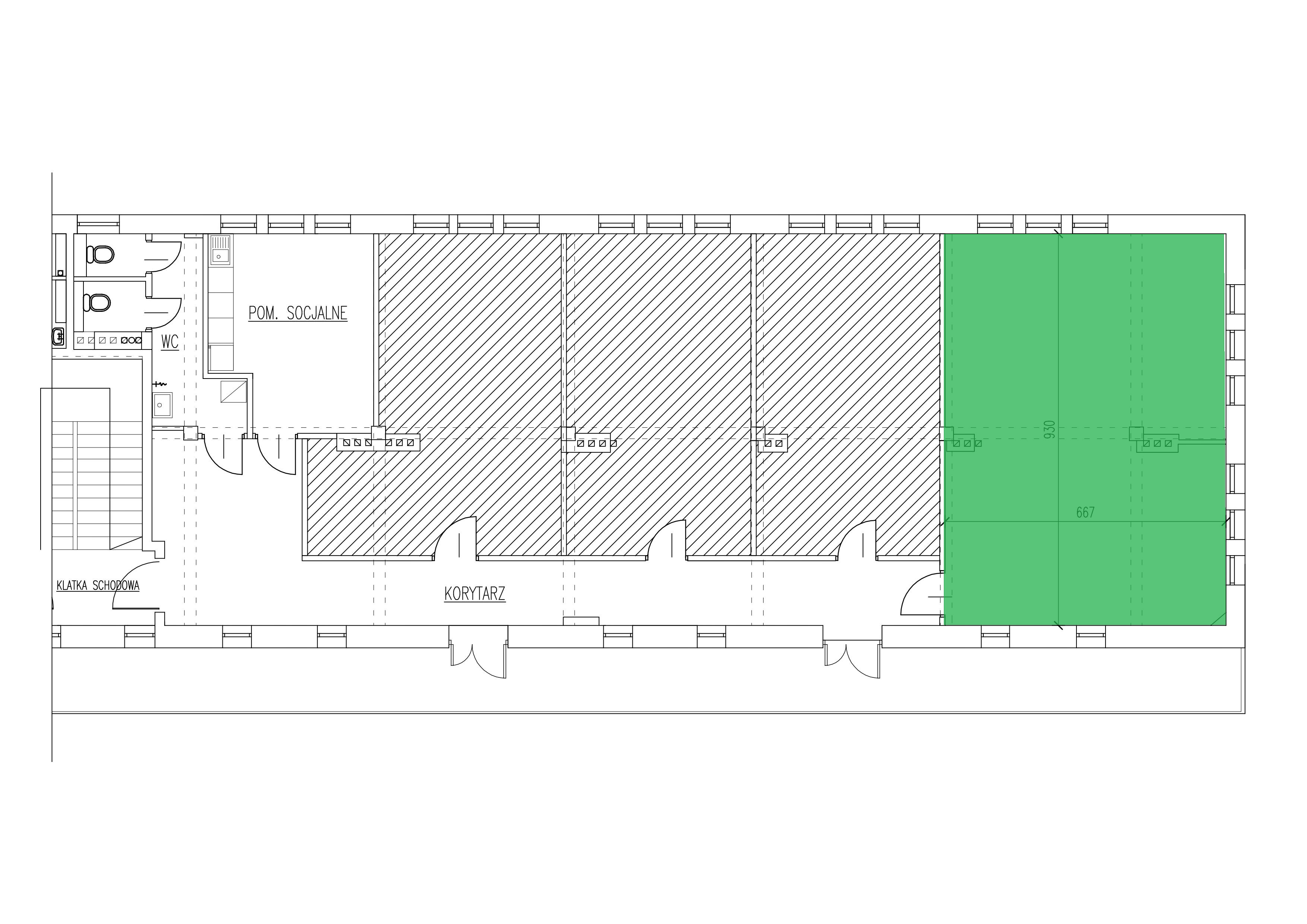 - pomieszczenie biurowe 61m2,